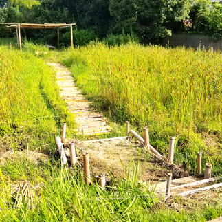 今月の内容は主に田んぼと裏山の整備です。ガマの穂が茂る休耕田を癒しの場にしていく作業をお客様と楽しんでいます